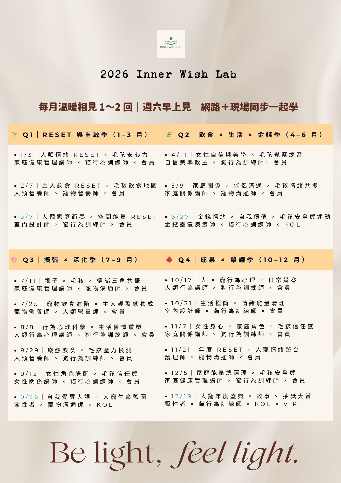 一套結合 人類+毛孩+家庭 的年度成長旅程。